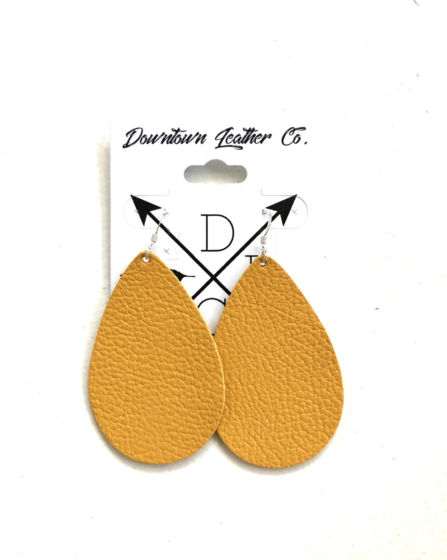 - 2″ leather drop earrings in gold